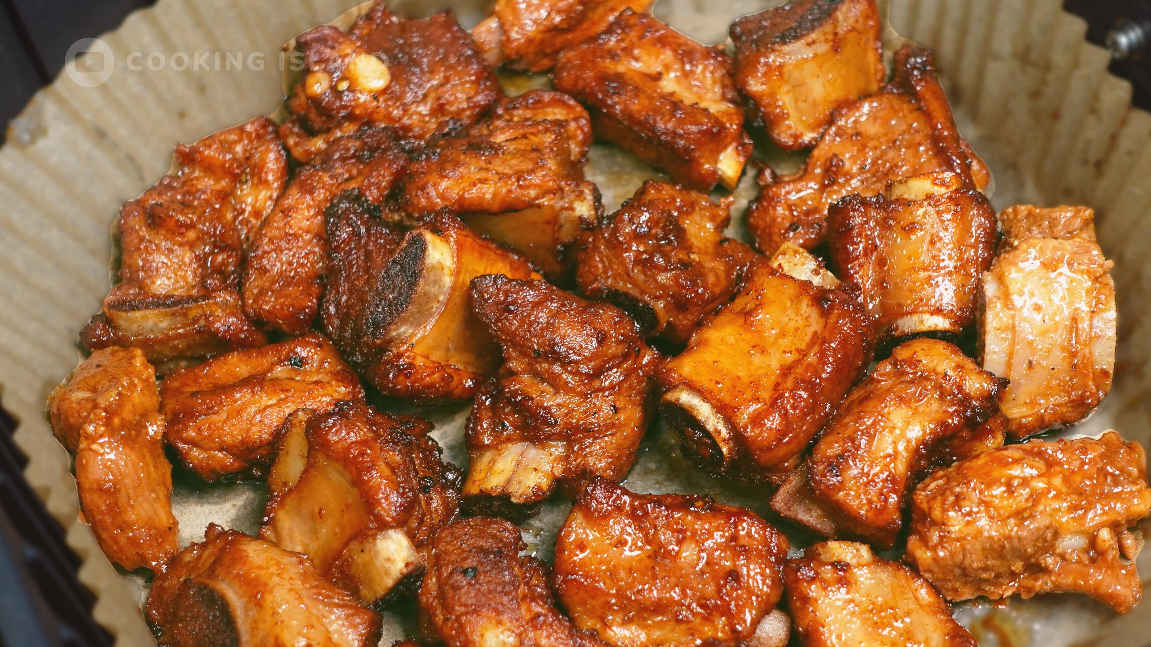 * Arrange ribs into the air fryer basket. Brush left-over sauce evenly on the ribs. 350-360F (170 – 180C) for 5-6 mins. After half the time, flip it over. Because it’s already cooked, don’t air fry too long!