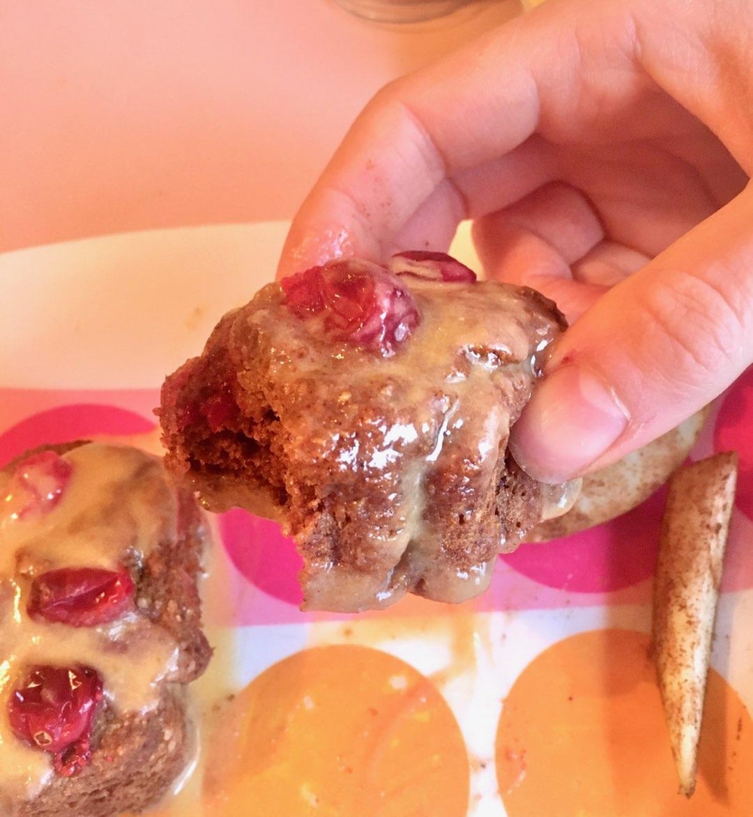 The full recipe is on my blog, and I don’t feel like writing it all out here. But the ingredients are oat flour, whole wheat flour, pumpkin puree, apple cider vinegar, monk fruit, pumpkin pie spice, and water. Everything is detailed front and center on the my page! Not trying to self-promote, just being lazy.