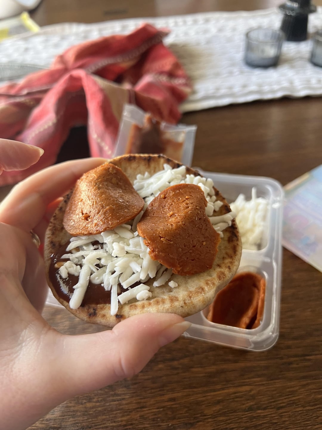 The pepperoni tastes weird, I’ve tried these myself