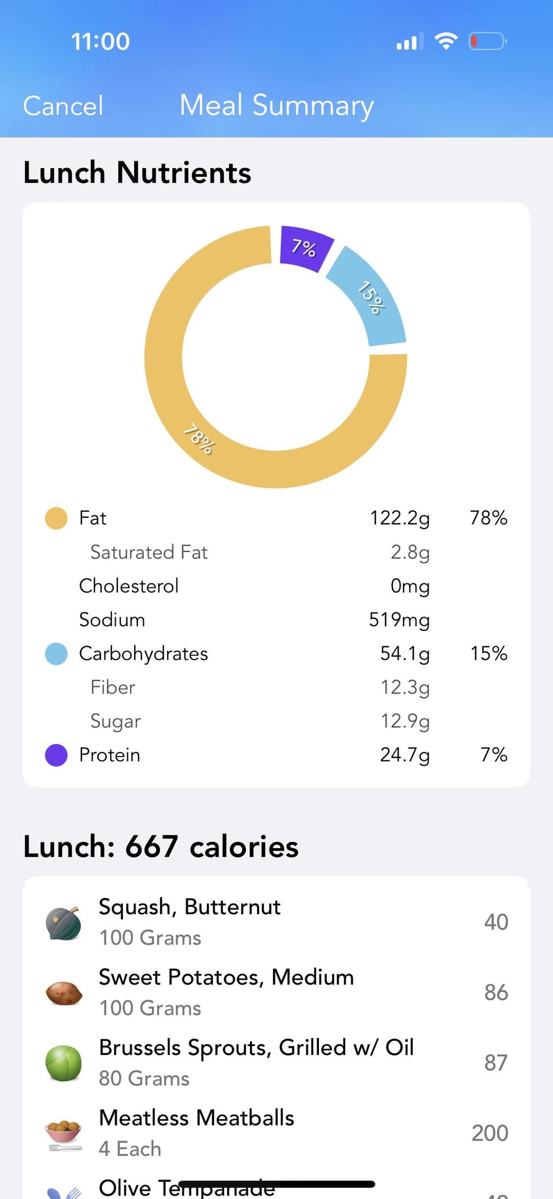 667 cal total; lunch and dinner!