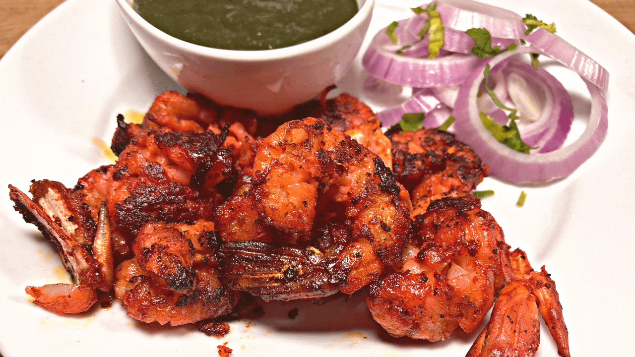 Tandoori prawns are marinated in a spiced yoghurt marination and cooked over tandoor till crisp golden.