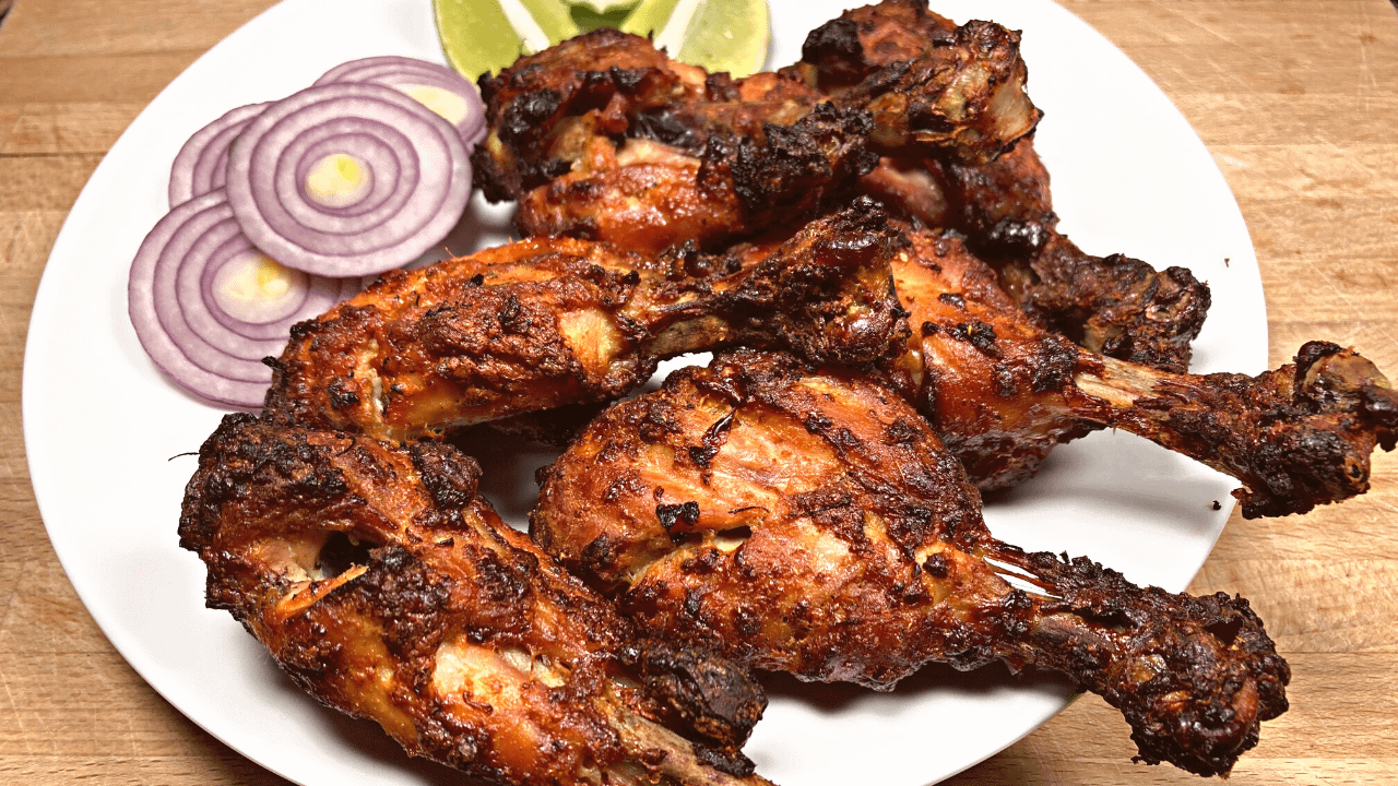 Tandoori/Roasted Chicken at its best! Chicken legs marinated in lemon juice, yogurt, and aromatic spices. Baked in the oven makes it incredibly tender, juicy, moist and outrageously delicious.
