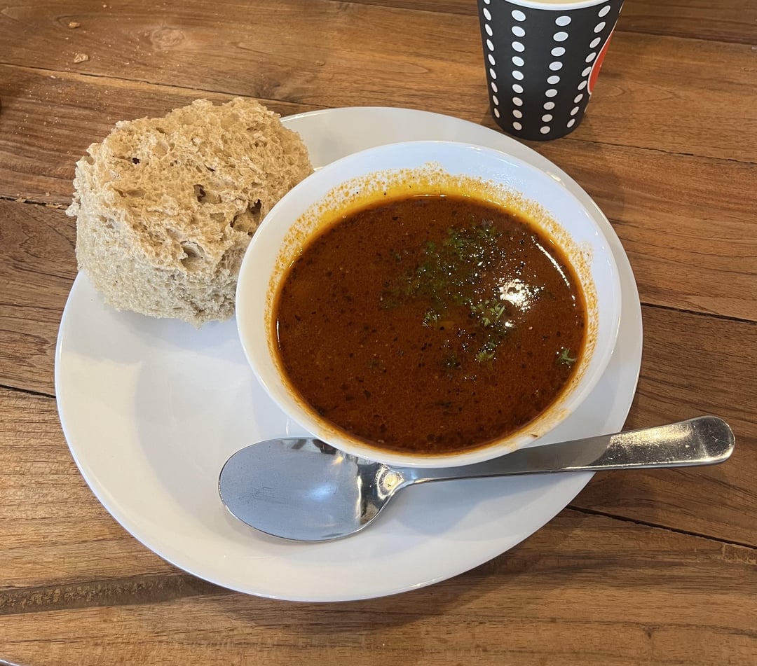 12)very brothy spicy tomato soup at a restaurant in Iceland