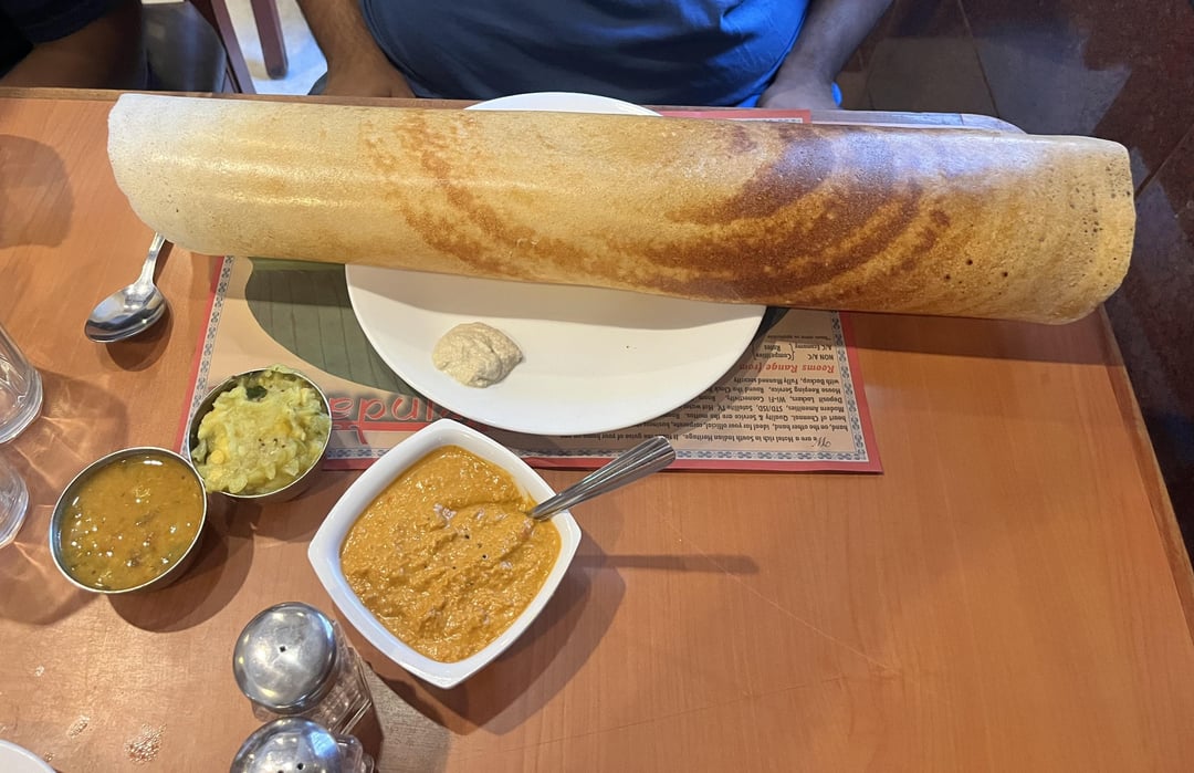 The largest one was served to me at this little hole-in-the-wall restaurant. When the waiter brought it to the table, at first I thought “That’s it? That’s not so big,” because it was not much larger than a regular-sized dinner plate. Then he put it in front of me and unfolded it [like an airplane’s wings](https://en.wikipedia.org/wiki/Folding_wing), and suddenly it was three times as large. I’m convinced it weighed over two pounds, filled with potato and roasted veg.